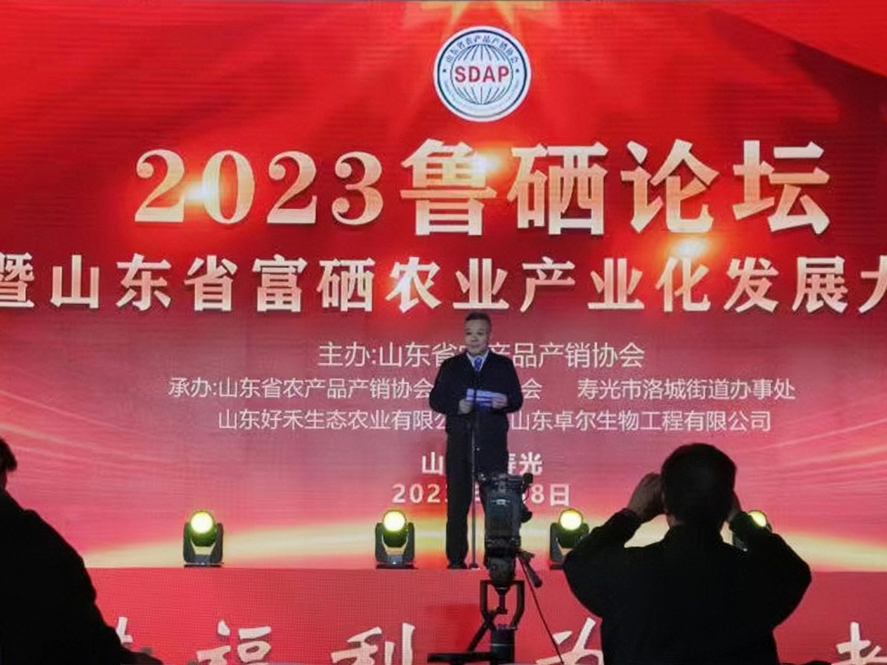 四月的齐鲁大地,万物复苏、柳绿花红、莺歌燕舞,一片生机勃勃的景象。2023年4月8日,在农圣贾思勰故里、“中国蔬菜之乡”寿光,由山东省农产品产销协会主办山东省农产品产销协会主富硒委员会、山东好禾生态农业有限公司、山东卓尔生物工程有限公司共同承办的“鲁硒论坛暨山东省鲁硒农业产业化发展大会”在菜博会展馆隆重召开。来自全国各地的500余人齐聚一堂、共享盛会。